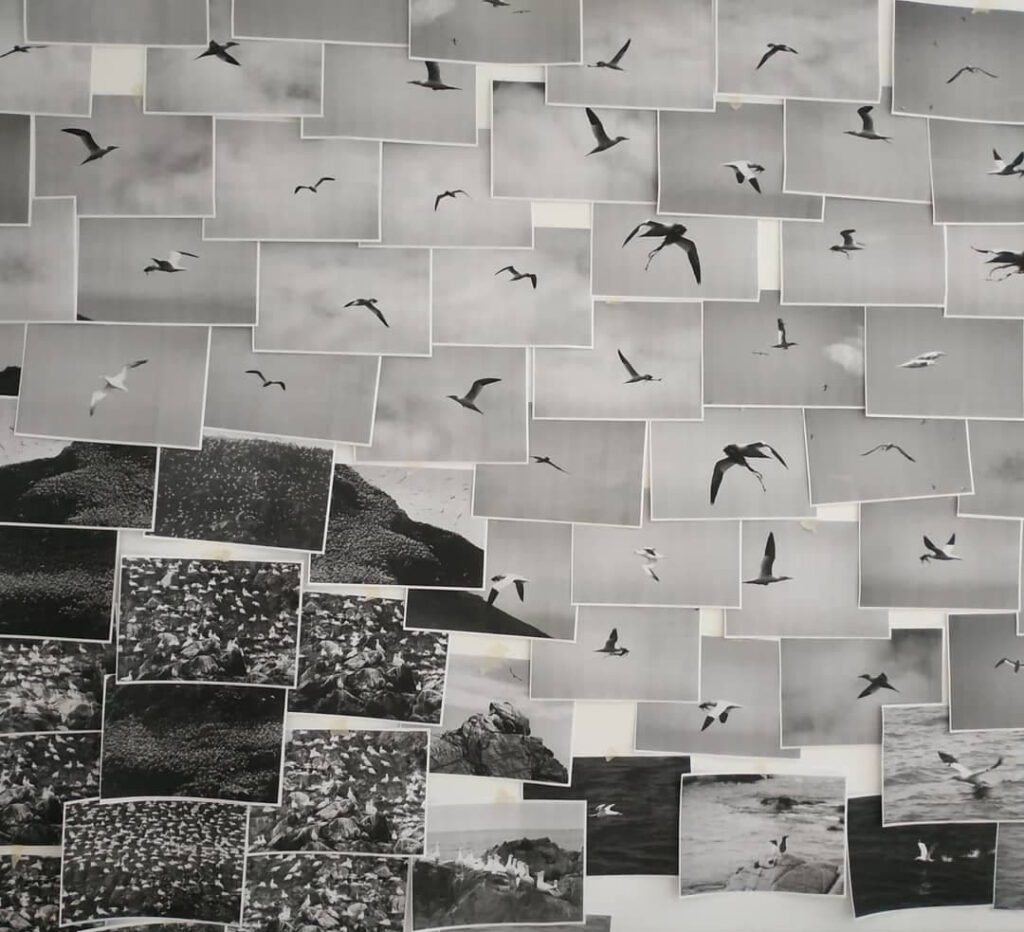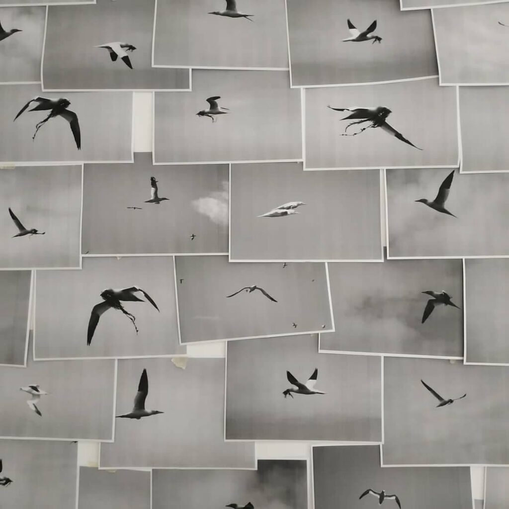 installation de photographies imprimées en noir et blanc sur papier imprimante, dimensions variables, 2020